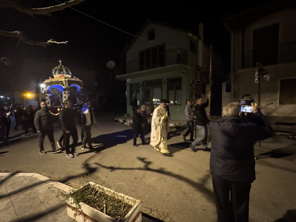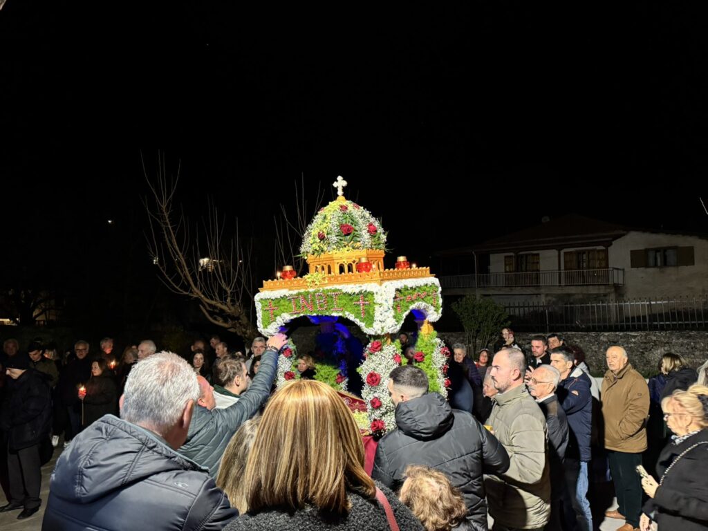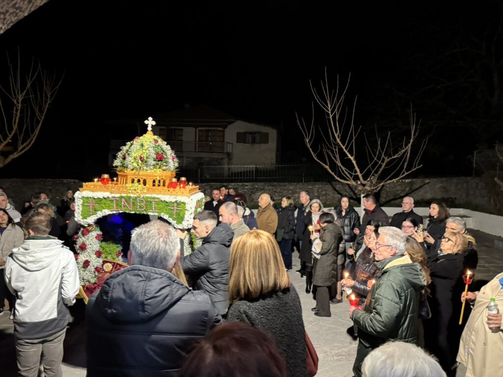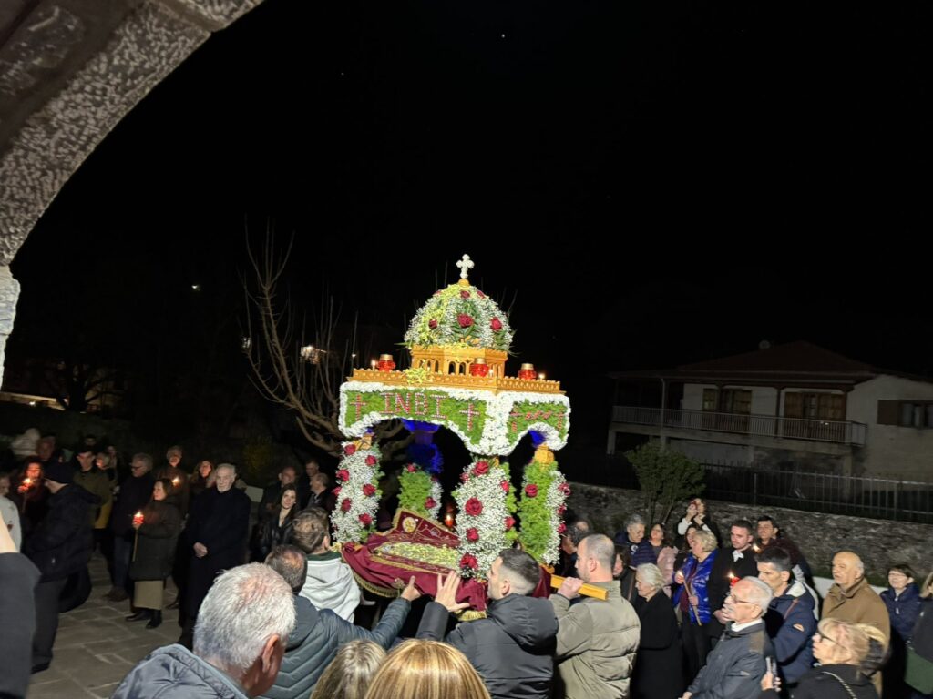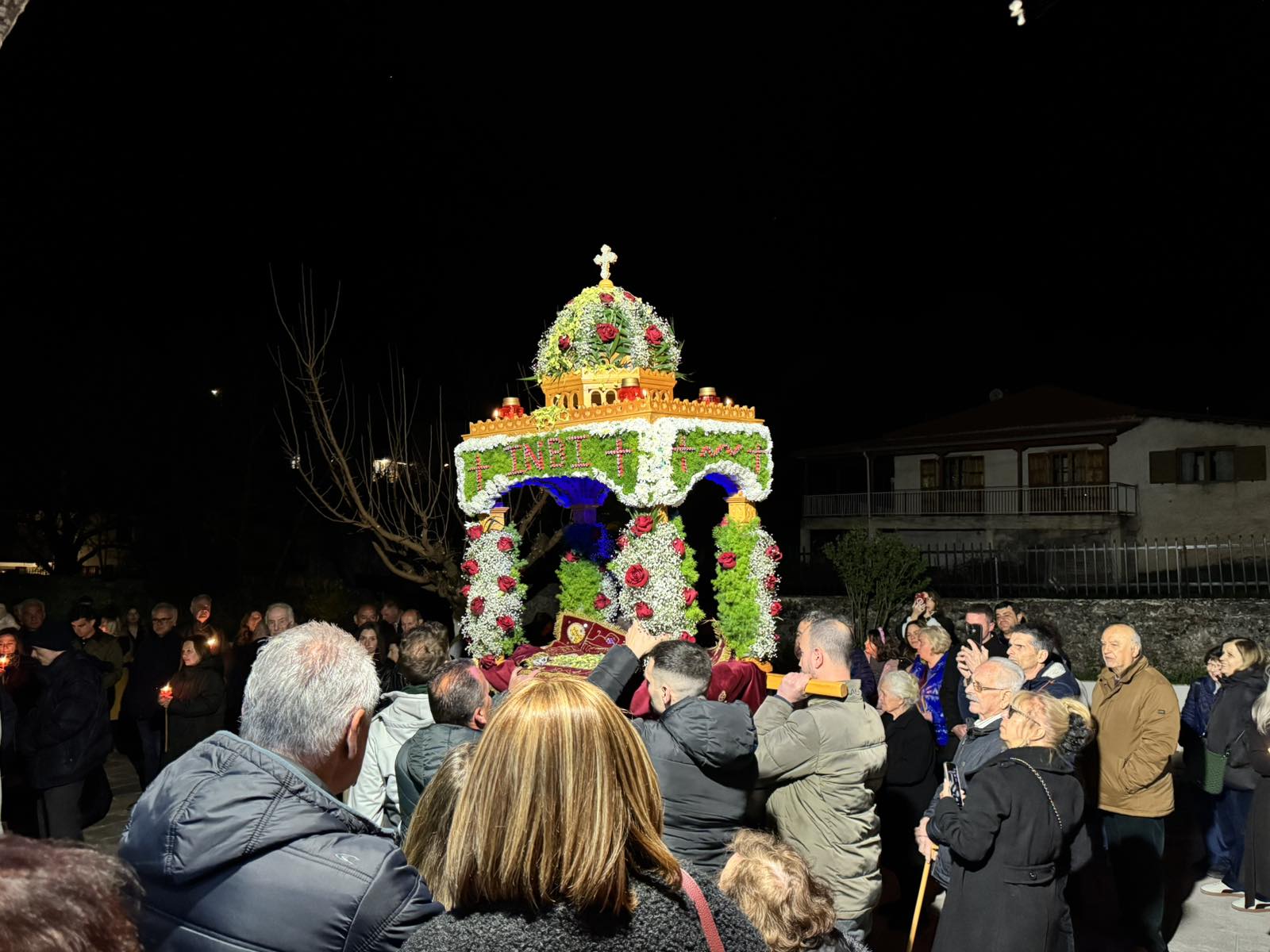 Το βράδυ της Μεγάλης Παρασκευής, η Νυμφασία βυθίστηκε σε ατμόσφαιρα βαθιάς κατάνυξης και συγκίνησης, καθώς πραγματοποιήθηκε η περιφορά του Επιταφίου παρουσία πλήθους κατοίκων και επισκεπτών. Ο Ιερός Ναός της Αγίας Τριάδας και οι δρόμοι του χωριού φωτίστηκαν από τα κεριά, ενώ οι ψαλμωδίες και η σιωπηλή συμμετοχή των πιστών δημιούργησαν μια ξεχωριστή πνευματική εμπειρία. Ο στολισμένος Επιτάφιος, μέσα σε κλίμα ευλάβειας και προσμονής, πέρασε από τα σοκάκια του χωριού, μεταφέροντας το μήνυμα της θυσίας, της πίστης και της ελπίδας της Ανάστασης.