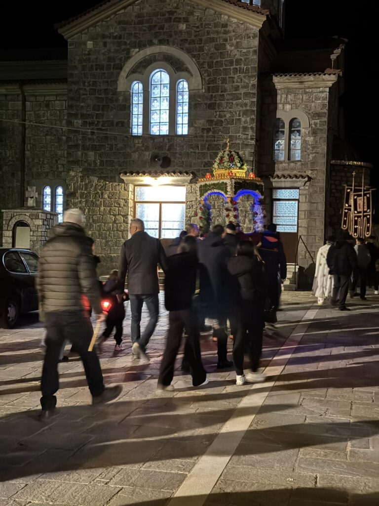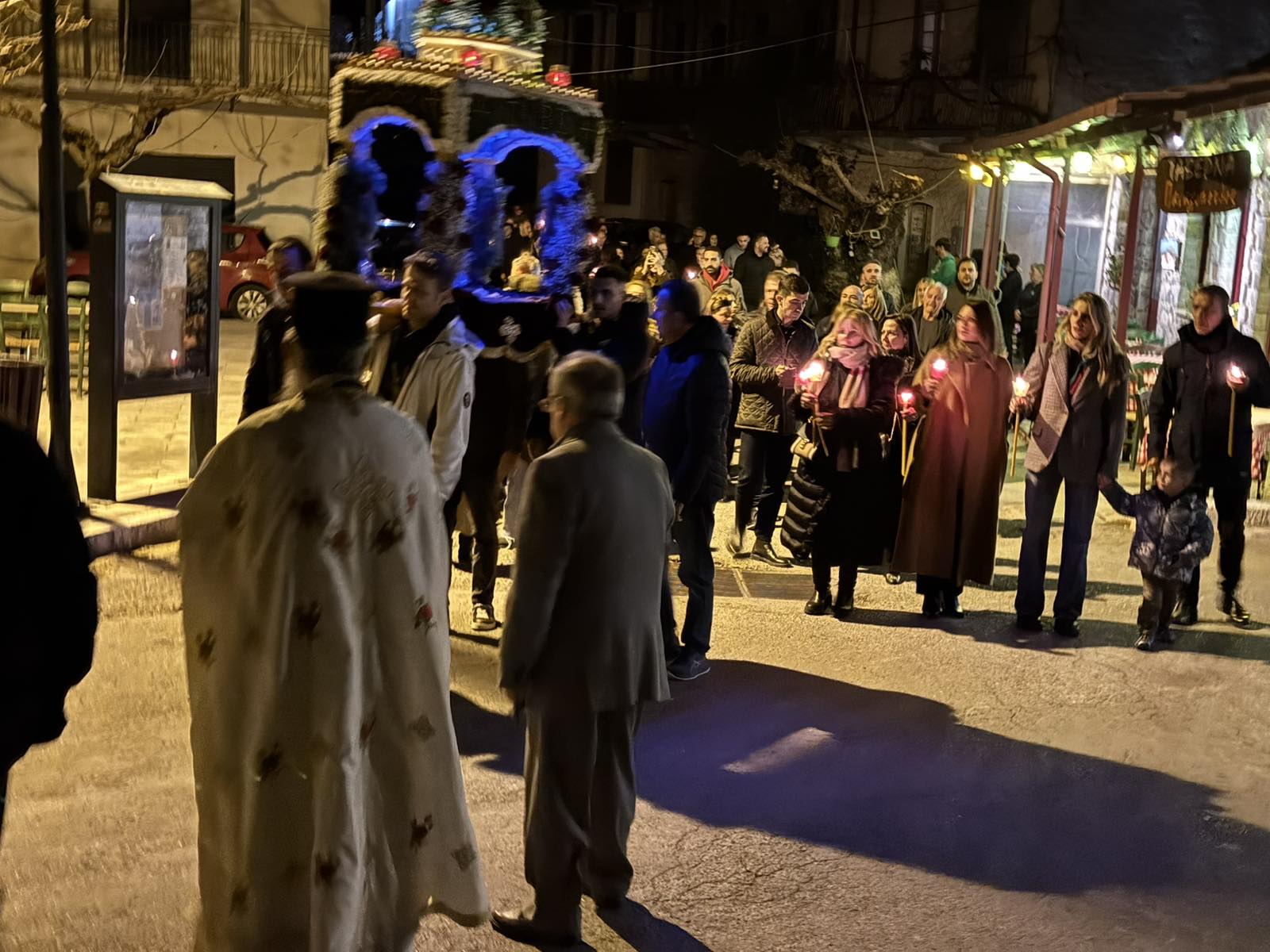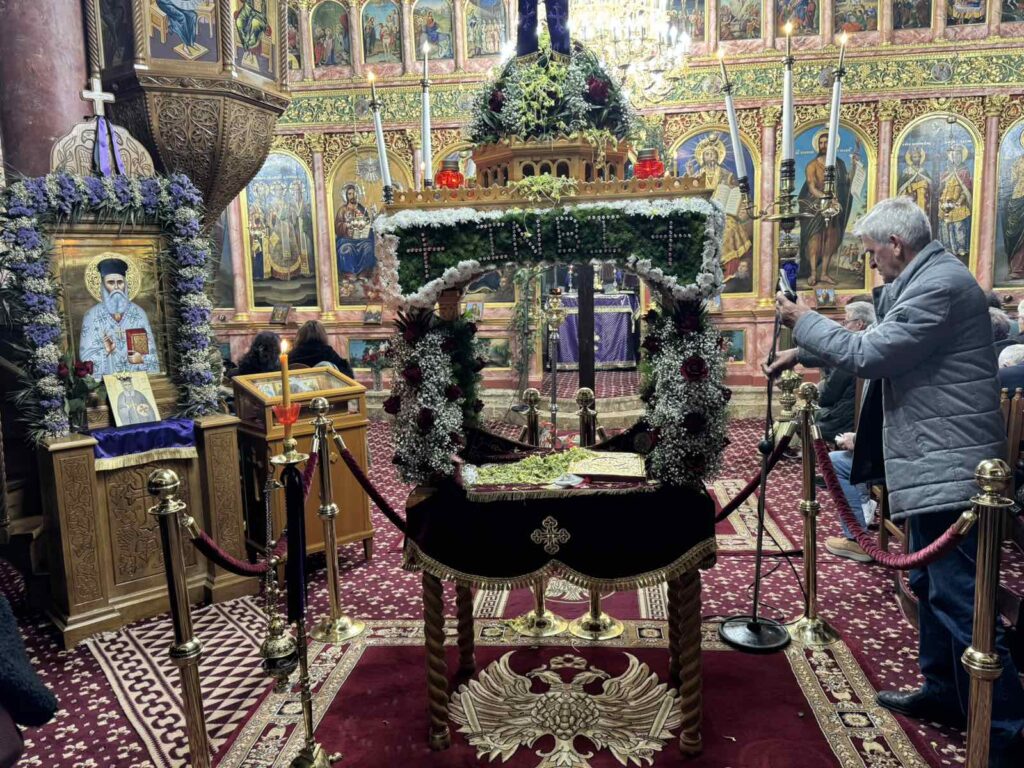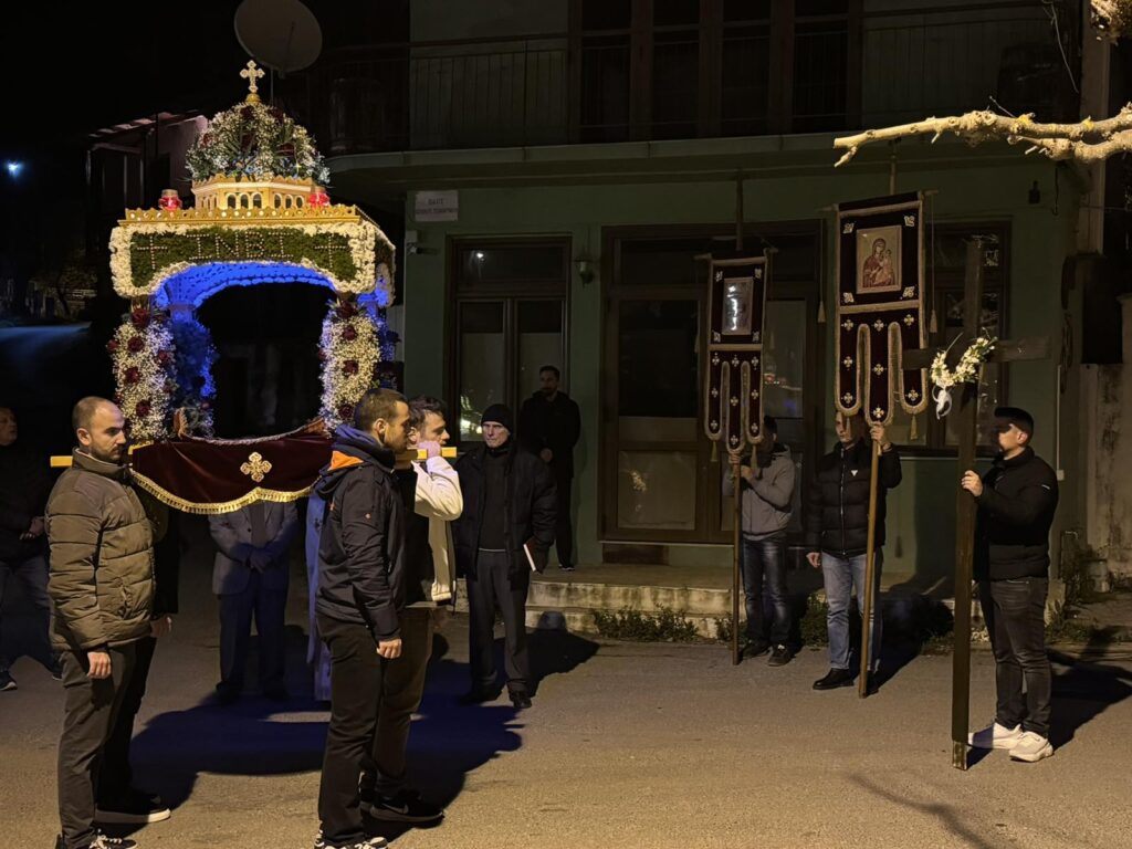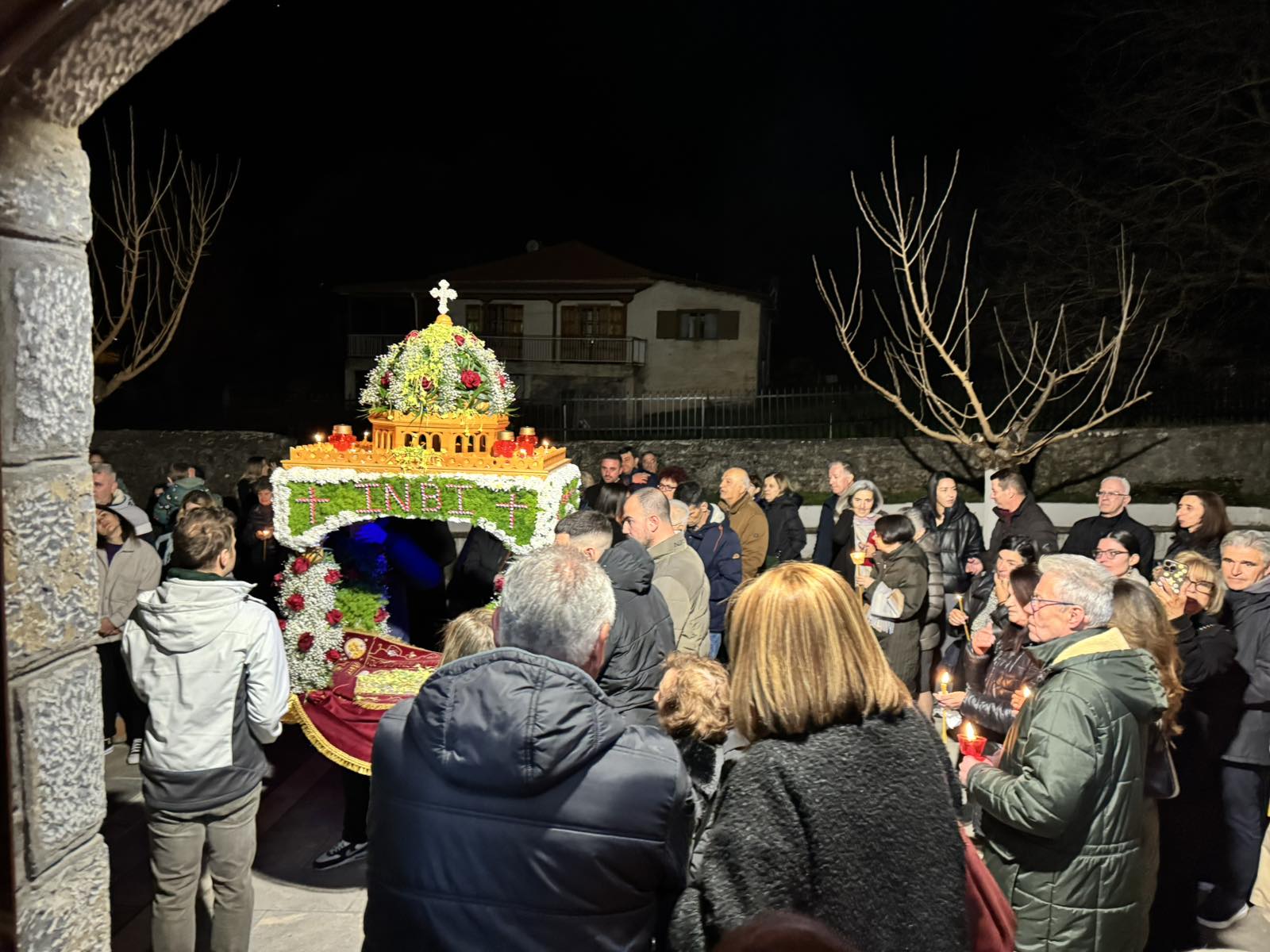Το βράδυ της Μεγάλης Παρασκευής, η Νυμφασία βυθίστηκε σε ατμόσφαιρα βαθιάς κατάνυξης και συγκίνησης, καθώς πραγματοποιήθηκε η περιφορά του Επιταφίου παρουσία πλήθους κατοίκων και επισκεπτών. Ο Ιερός Ναός της Αγίας Τριάδας και οι δρόμοι του χωριού φωτίστηκαν από τα κεριά, ενώ οι ψαλμωδίες και η σιωπηλή συμμετοχή των πιστών δημιούργησαν μια ξεχωριστή πνευματική εμπειρία. Ο στολισμένος Επιτάφιος, μέσα σε κλίμα ευλάβειας και προσμονής, πέρασε από τα σοκάκια του χωριού, μεταφέροντας το μήνυμα της θυσίας, της πίστης και της ελπίδας της Ανάστασης.
